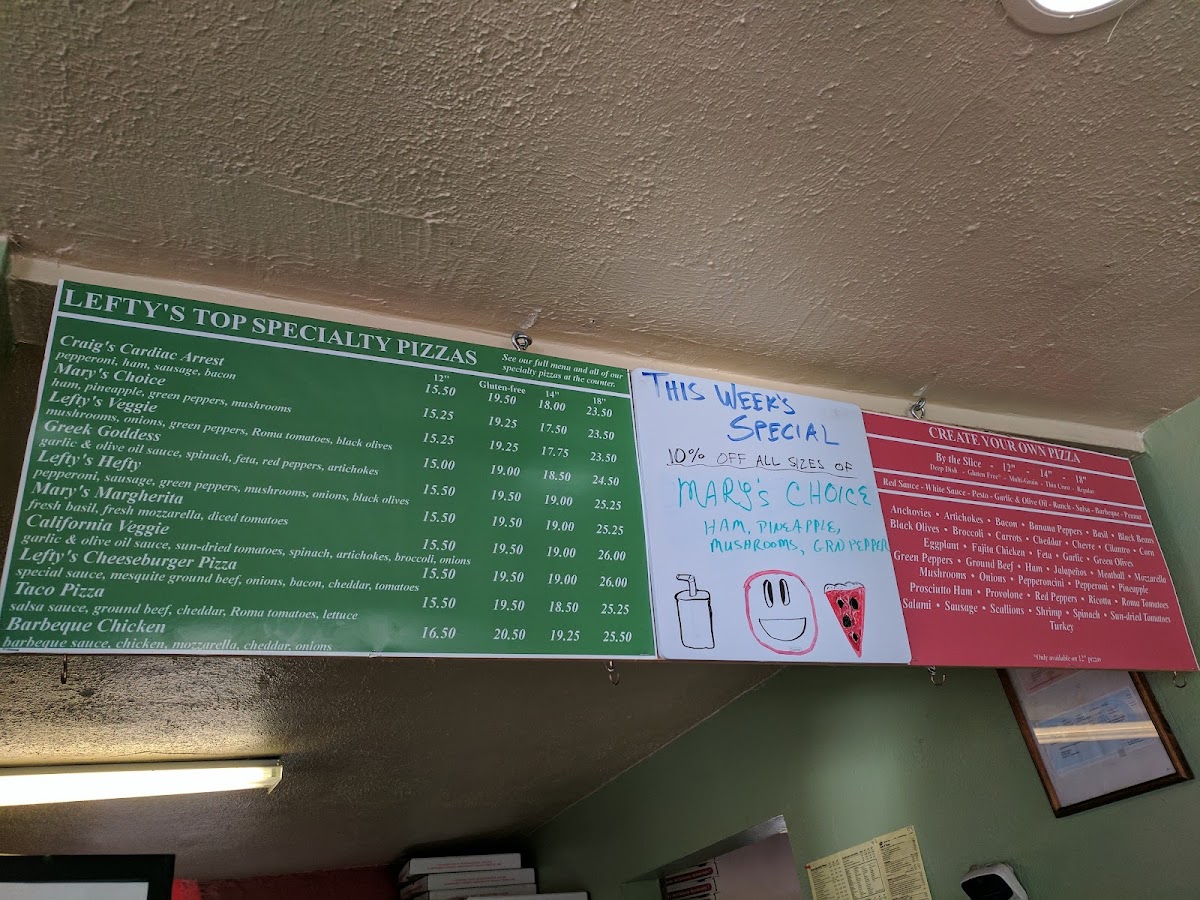 Lefty's Gourmet Pizza and Ice Cream Menu